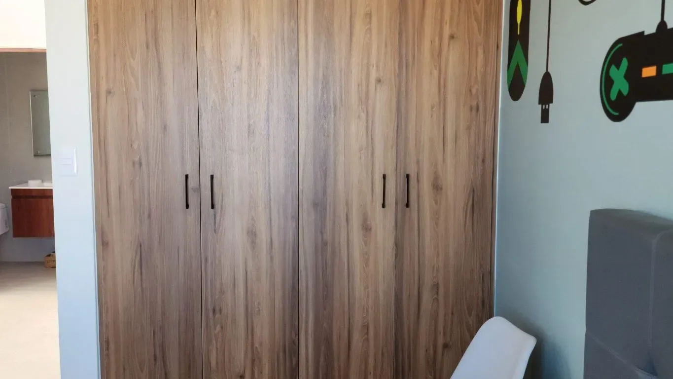En los closets, la carpintería no se queda atrás. Cada uno de ellos ha sido diseñado con precisión y elegancia para aprovechar al máximo el espacio disponible, permitiéndote organizar tu ropa y pertenencias de manera eficiente. Los acabados en madera de alta calidad le dan un toque de lujo y sofisticación a estas áreas tan importantes de la casa.
